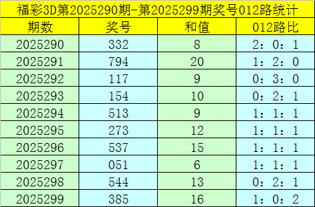 上期转头:福彩3D第2025299期开出奖号:385。奖号为组六方法,与试机号莫得同,奇偶比为2:1,大小比为2:1,012路比为1:0:2陕西汇美建筑装饰装修有限公司,和值为16,跨度为5。