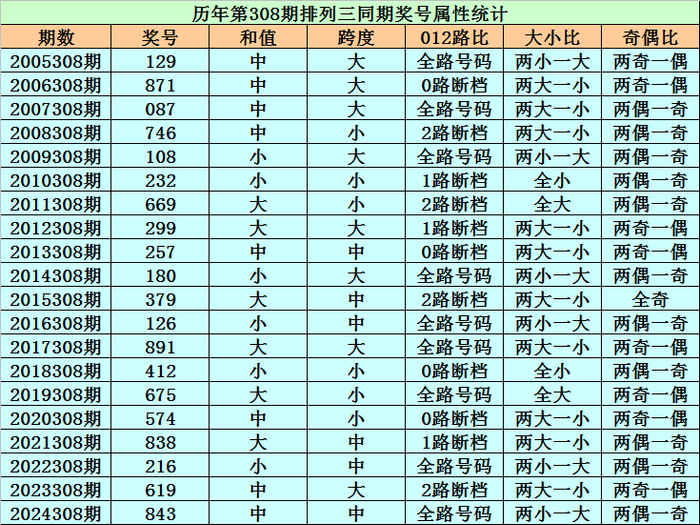 历史上第2025308期摆设三已开出20期奖号了,积年同时奖号永诀为:129、871、087、746、108、232、669、299、257、180、379、126、891、412、675、574、838、216、619、843,详备统计见下表: